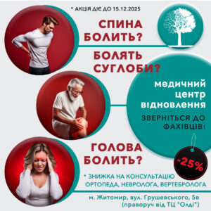📍 Медичний центр Відновлення: м. Житомир, вул. Михайла Грушевського, 5в (праворуч від ТЦ “Олді”)